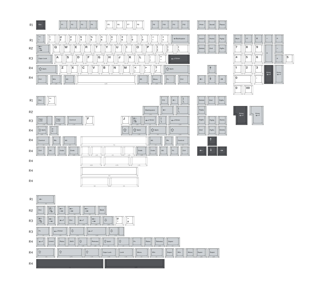 - Shilfs: 1u, 1.25u, 1.75u, 2u, 2.25u, 2.75u - Profile: Cherry